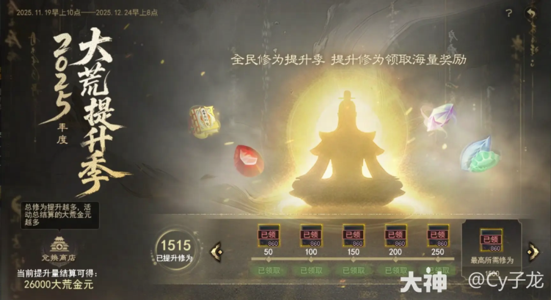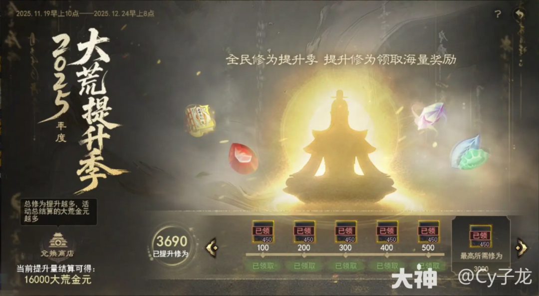 少侠们晚上好呀~ 自踏入大荒,不少少侠便走在追求卓越的道路上,孜孜不倦,这种精益求精的精神,正是天下少侠奋进的象征。为了嘉赏诸位努力的少侠,【2025大荒提升季】重磅开幕,这次官方准备了海量厚礼,让大家在提升的同时也能因此获得许多奖励! 来自莫问