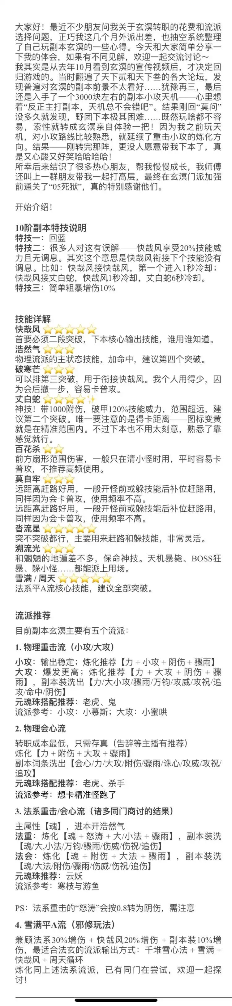 少侠们晚上好呀~ 在大荒,转职可谓是一条“不能回头”的道路 一旦下定决心转职 就无法再回到原来的门派 因此,许多想要尝试新门派的少侠 都会在最终决定前再三思索 查阅大量的攻略、经验帖等 以此帮助自己进行综合性考虑 来自莫问今朝服务器的【丶小慕斯丶】少侠 就是这“转职大军”中的一员 因为玄溟重归大荒的他 从转职前到转职后 都一直勤勤恳恳地做好每一步攻略 由此整理出了不少转职玄溟的经验 从玄溟各流派特色、技能分析 到元魂珠使用类型 他都有所涉猎研究 话不多说,今日不妨走进他的分享 看看这位少侠是如何进行养号的吧! 目前角色属性 采访全纪录 问 少侠为什么选择转职? 其实我就是因为玄溟而回归大荒的。当时正百无聊赖地刷抖音,无意中看到了新门派的宣传视频,玄溟弟子遨游大海的画面实在太帅,所以想了几天后,就先以天机的身份回来,再转职为玄溟。 从天机到玄溟,我给自己定了一个又一个培养小目标,从而成为能够在副本里自由驰骋、从容挑战BOSS的玄溟,其目的都是为了宴请小时候的自己。 小的时候玩天下贰,总是很羡慕别人的全套天域、大禹、红烧,觉得那些东西都很遥不可及。回归大荒后,我再重新体验大荒里的各种熟悉又陌生的玩法,逐渐拥有那些曾经遥不可及的装备,达到小时候想都不敢想的成长,这种满足感是无与伦比的。 问 为什么选择这个流派? 因为我喜欢和亲友们组队下副本的感觉,与志同道合的他们在副本里能一边下本,一边打趣吃瓜,很有意思。所以我练号也会朝着PVE玩法的方向进行培养。同时我也去查阅了很多新门派的资讯,与许多玩家进行讨论,特别是官方论坛里有很多大佬分享经验,从而了解到力玄比较适合副本玩法,而且这个流派的打发也比较玩过天机的我,综合以上几点,就决定成为力玄了。 为了转职成为一名适合自身玩法的玄溟,我还整理出了一份玄溟攻略,从副本特技到技能介绍都有相关总结,有需要的玩家也可以参考一下。 问 为了把角色培养为更加理想的状态,少侠都做出了什么努力? 决定转职为玄溟后,除了把灵兽全部升为2境界、打了一套67级手工套过渡以外,因为我主要玩的就是副本,所以主要做的也就是把天机副本套全部转为玄溟副本套。 这个过程可不简单,需要准备好所需要的道具材料。为了让各位同样有兴趣转职的玩家进行参考,我把具体材料及其消耗都整理出来,详细可查看下表。 其中,我们可以通过全通05来攒满声望,所需的材料1个化真为500军资。 玄溟橙色属性是阴伤,附水,怒涛,其他的话可以看看之前其他玩家整理出来的经验贴 值得一提的是,其他八个门派里,羽毛转职为玄溟是最具性价比的,因为这两个门派同样都需要阴伤炼化。 至于元魂珠,在对玄溟各项数值进行一番研究后,我总结出了不同玄溟所需的元魂珠类型,其中针对物理玄溟各有推荐,而法系玄溟下本建议使用炎妖,努力加魂、吃药即可。 重击大攻玄溟下本推荐: (万金油珠子) 重击小攻玄溟下本推荐: 鬼影迷踪与怒虎临渊可二选一,其中怒虎临渊是万金油,若命中、万钧重击不够的话,可以用鬼影迷踪,毕竟可以加80小攻,实在太香了,锁洗完美后也可以换。 会心玄溟下本推荐: (万金油珠子) 在杀手之眼和碧海潮生之间,少侠亦可根据自身情况进行选择。 问 前文说到少侠给自己立了很多个小目标,少侠可以分享一下吗? 当时定了几个大计划,第一灵兽到80并且拥有3境界马书;第二势力技能,笔九+全高毕业;第三觉醒,现在目标110级尽量全9和骤雨点到10;第四江湖技能,杀戮点到叁境界;第五炼化再提上去的同时尽量第5条出技能威力;第六就是图腾3蓝+1金毕业;第七就是锁洗副本套尽量毕业;第八慢慢培养手工套装备……现在培养计划就这么多,实在任重道远! 问 最后有什么话要对势力小伙伴说的吗? 特别感谢师父,感谢匆匆子龙未央,以及我们固定队的陪伴和鼓励!最后加一句【黑风口】势力牛逼~ |