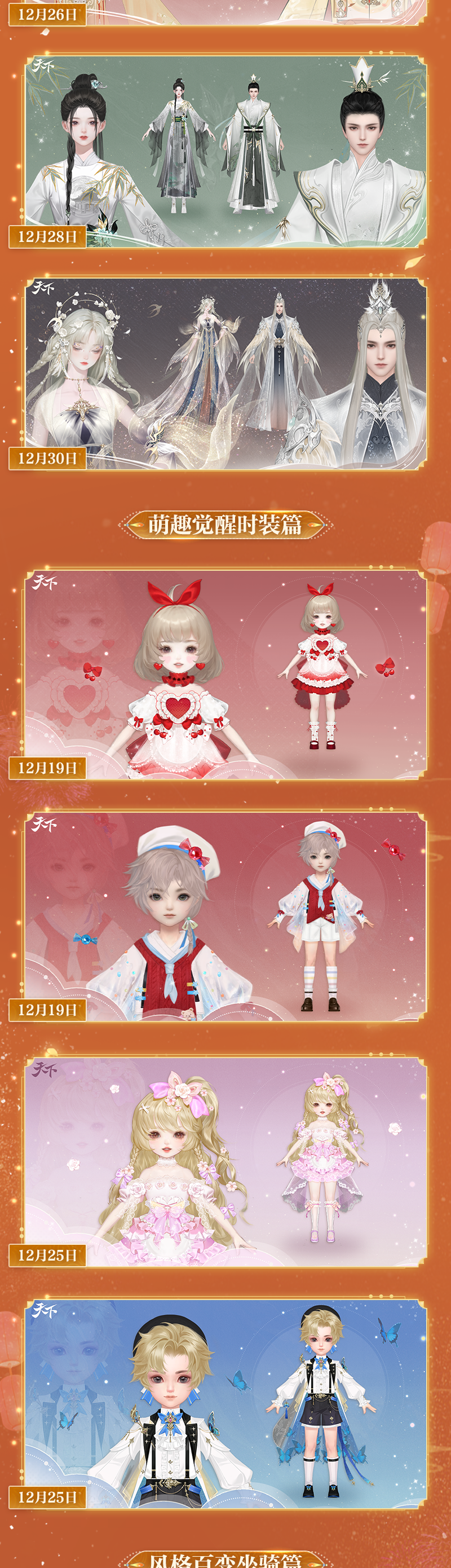 少侠,欢迎回家 这一次,除了新引擎、新场景、新捏脸等 一系列让人眼前一亮的全新体验以外 我们还为新老少侠准备了最为丰厚的奖励 20款全新高品质精美时装、坐骑 无需自选、登录即领! 商城232件时装 27个坐骑、40个挂件特效 总价值5000