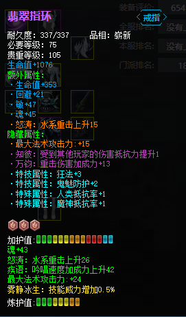 《天下:万象》12 月 17 日全平台上线,三端互通畅玩大荒! 魂玄翡翠指环 装备主人:叫我龙丷朋友 主要加点魂的法玄 更侧重于法系攻击的培养 魂属性叠加夯实输出基础 最大法攻与特技属性【狂法】 皆为其提高法系伤害的上限 两条怒涛和万钧的搭配 为少侠的重击率保驾护航 疾语加成,读条效率更高
