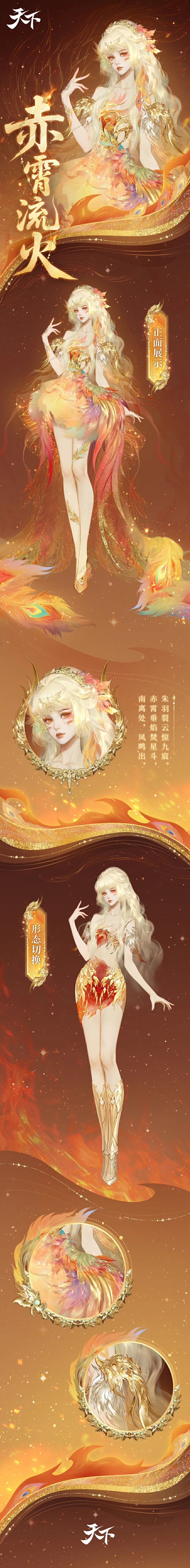 《天下:万象》12 月 17 日全平台上线,三端互通畅玩大荒! 至臻时装·赤霄流火 作为大荒之内最珍贵的华服,至臻时装往往描摹山海异世中最尊贵的神兽,或是掌控强大的自然之力的神祇。这一次的灵感,就来源于中国古代神话中的神兽“凤凰”。 南离处,凤鸣出。赤霄垂焰焚星斗,朱羽裂云惊九宸。 天下贰玄小素 赤霄