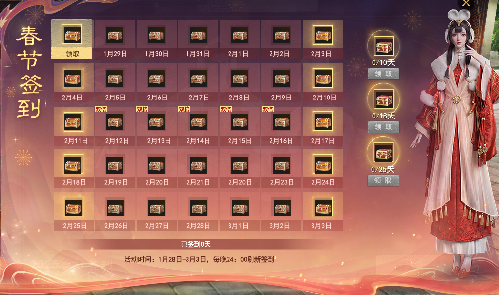 天下贰:海量新春好礼,签到、活跃即得!永久时装、奇珍马等你打包带走